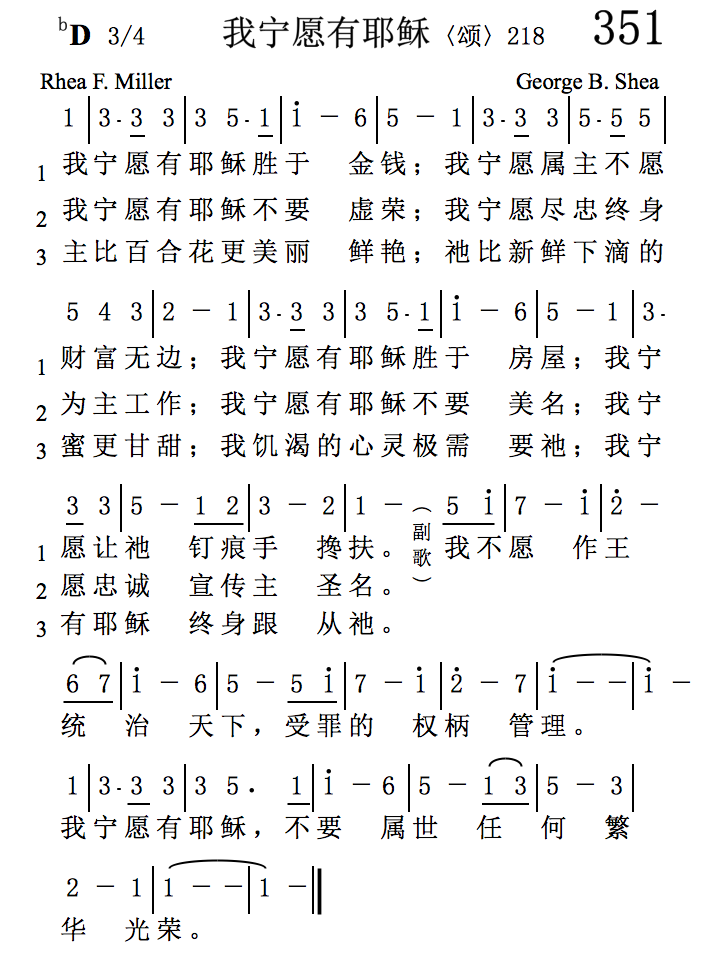 灵音诗歌351《我宁愿有耶稣》