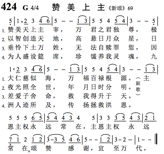 诗歌:灵音诗歌424《赞美上主》 ;《万国都要来赞美主》