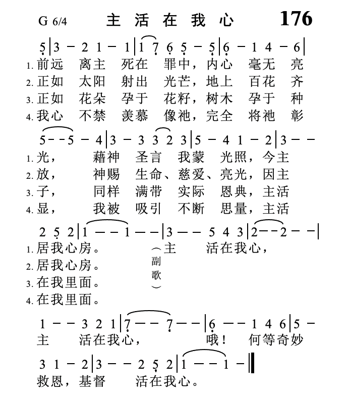 《灵音诗歌》176《主活在我心》