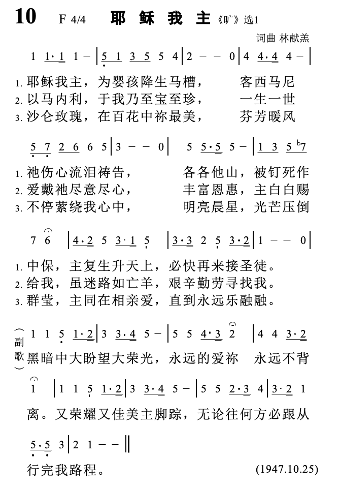 诗歌:灵音10《耶稣我主》;13《惟独耶稣》