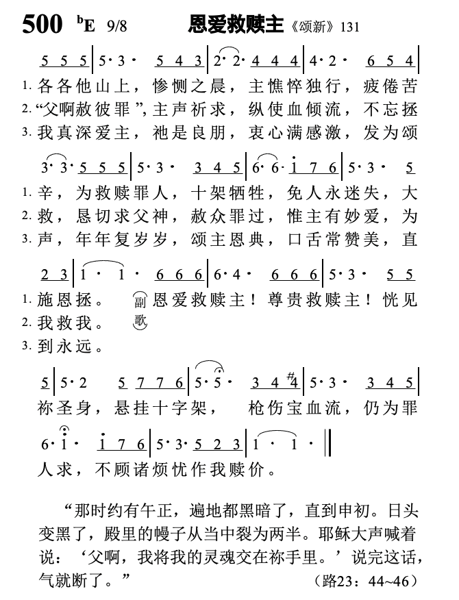 诗歌:灵音500《恩爱救赎主》、115《因信称义》