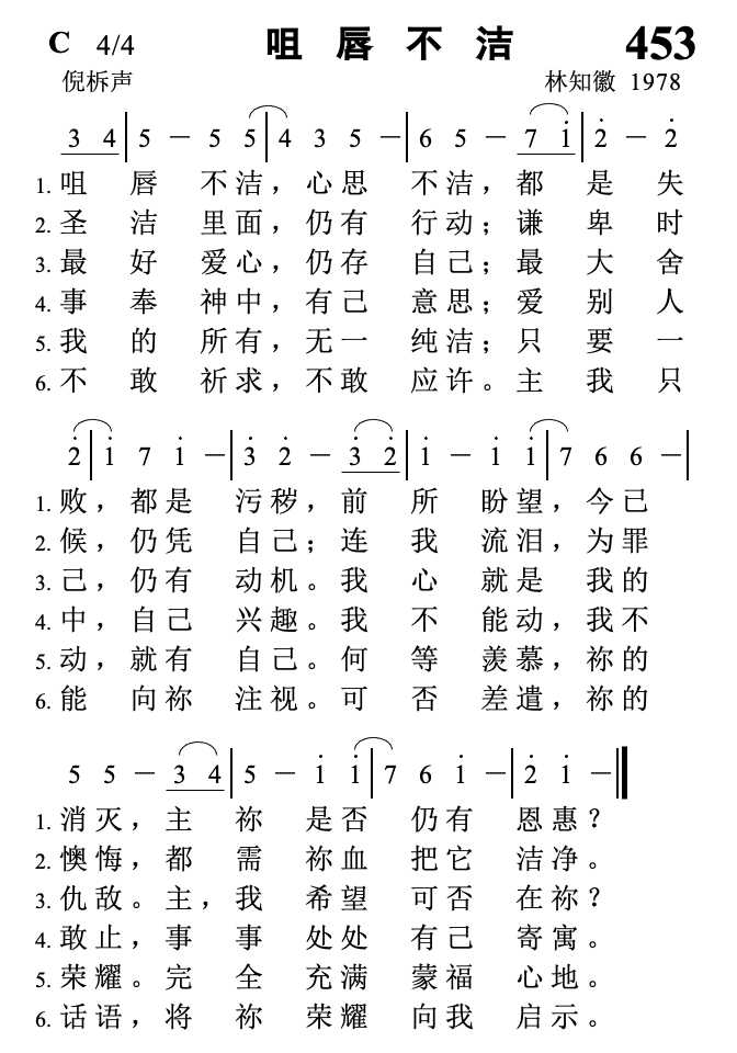 《灵音诗歌》453《咀唇不洁》