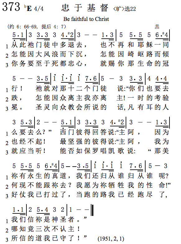 诗歌:灵音422《歌颂耶稣》、373《忠于基督》